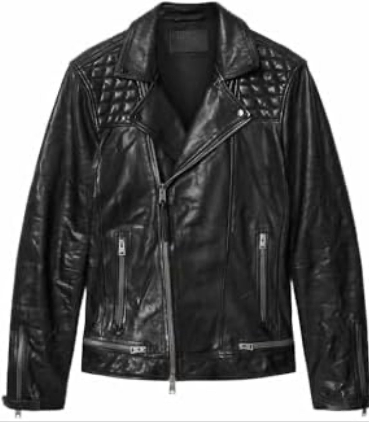 La chaqueta Biker de cuero Conroy de Allsaints es una prenda clásica inspirada en el estilo bike original , hecha de piel de oveja con acabado ligeramente desgastado para un look autentico, destaca por sus paneles acolchonados en los hombros , herrajes metálicos y cierre asimétrico con cremalleras, ademas de múltiples bolsillos con cierre, tiene un corte regular pero ajustado en zonas clave para estilizar la silueta, talla chica, Preloved.