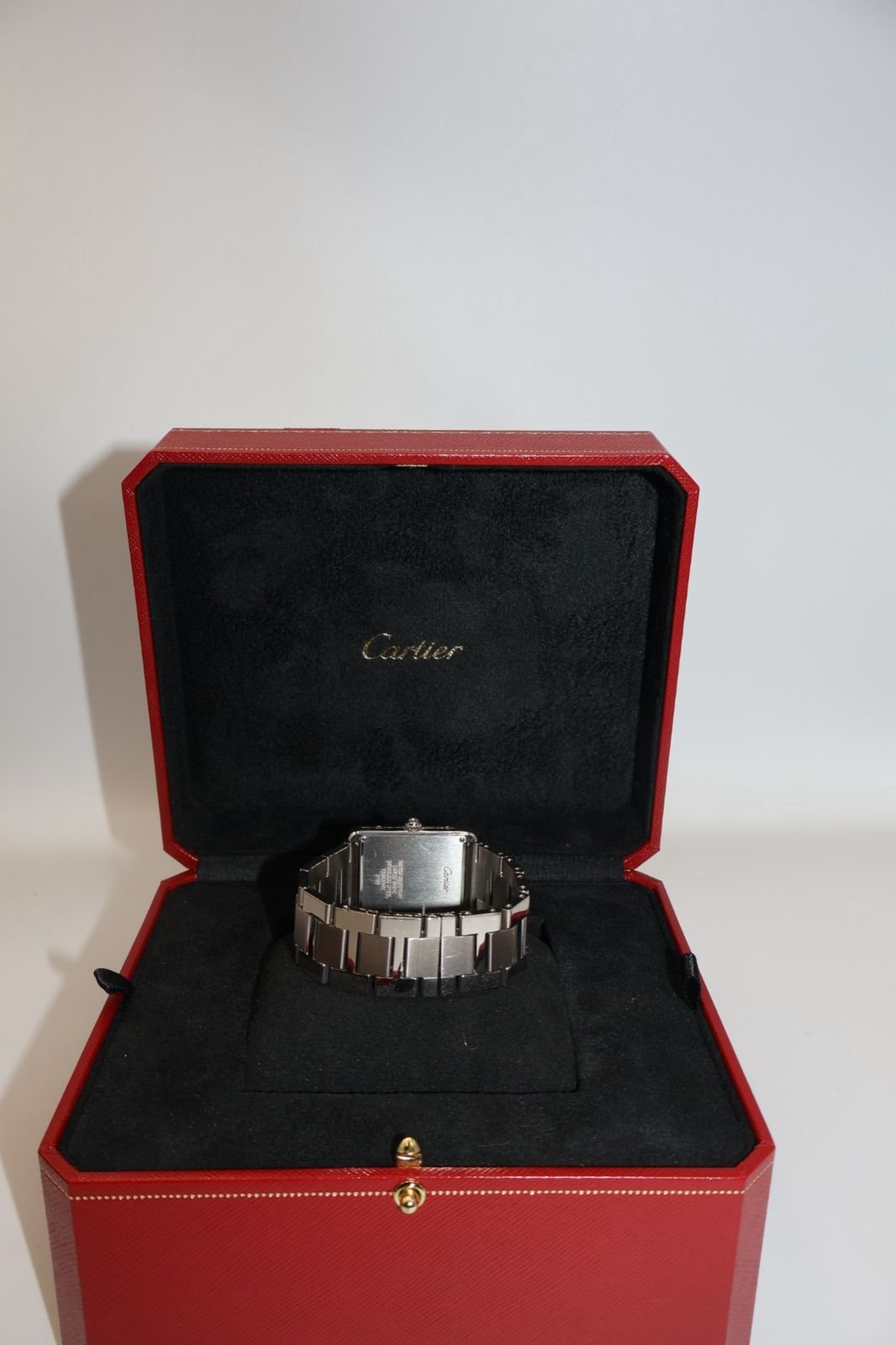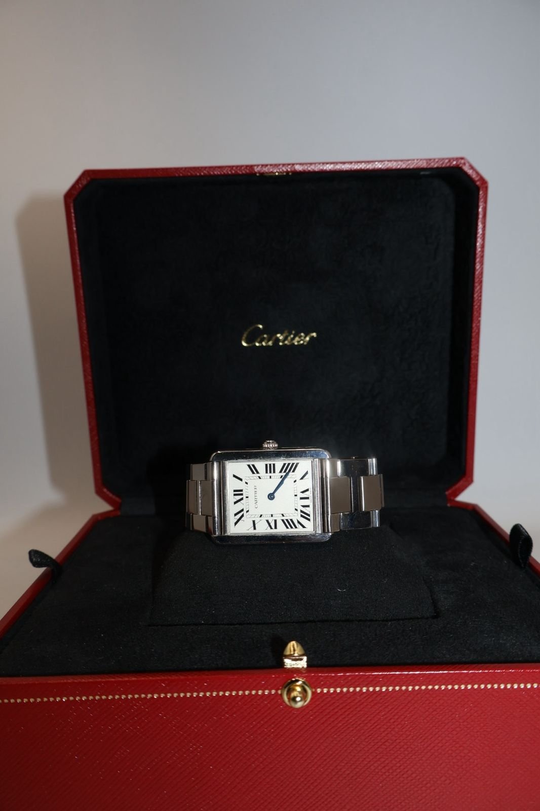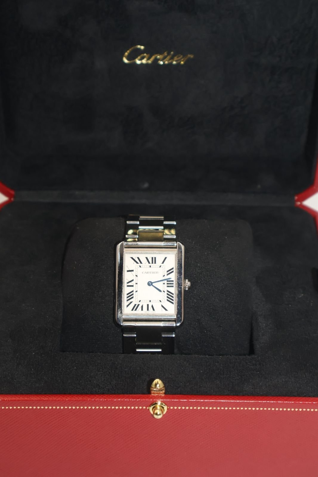 El reloj Cartier Talk Must Solarbeat es un aversion moderna de un reloj icónico creado por Louis Cartier en 1917, inspirados en los tanques de la Primera Guerra Mundial, mantiene su diseño clásico de caja rectangular con lineas limpias y elegantes , esfera plateada con agujas azuladas y corona con cabujón, , este modelo incorpora un movimiento fotovoltaico Solarbeat , que funciona con luz y evita cambios frecuentes de batería , esta fabricado en acero, con brazalete del mismo material mide 33,7 x 25,5 mm con 6,6 mm de grosor y es resistente al agua hasta 30 metros, Preloved.