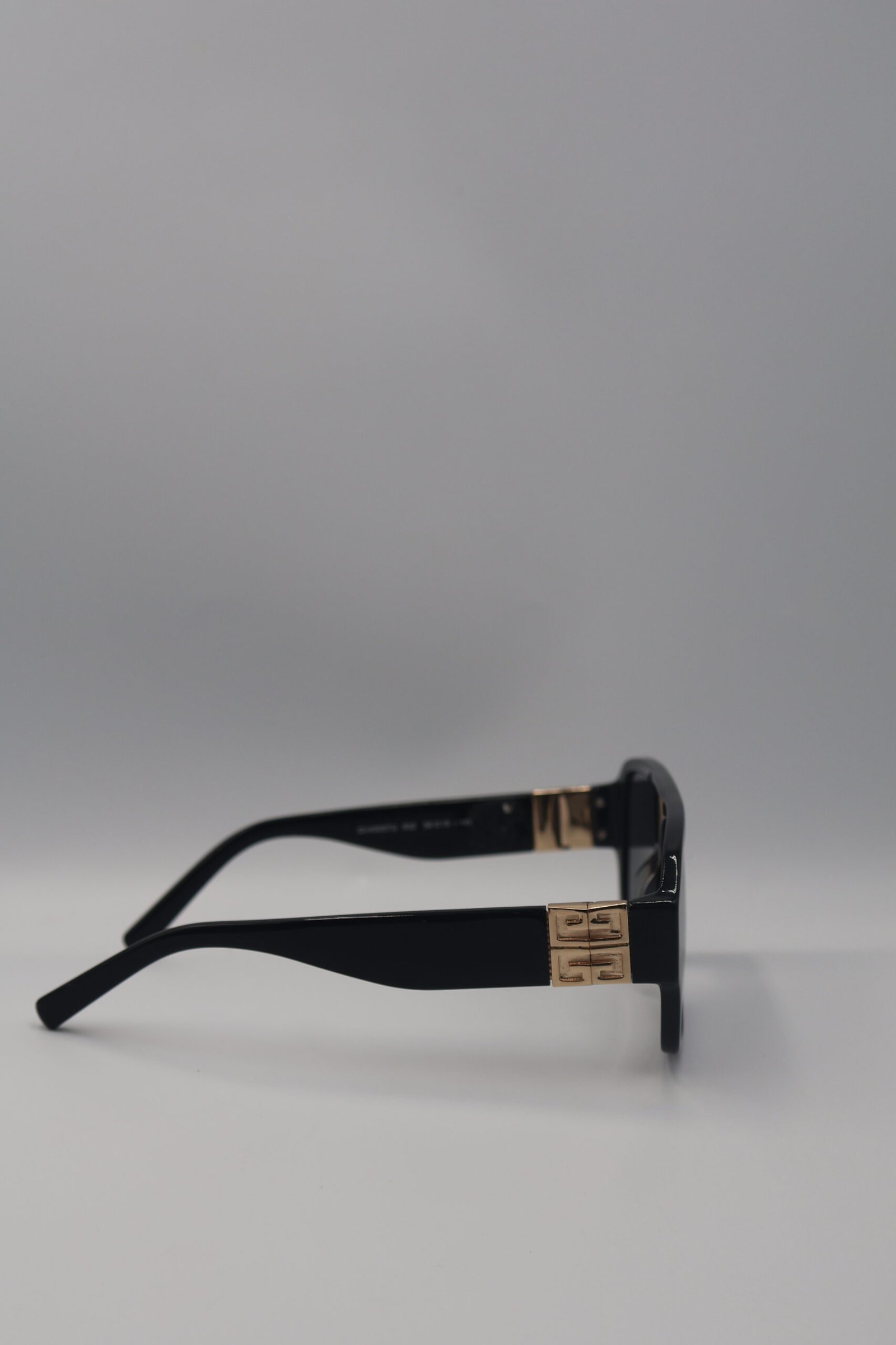Lentes de sol Givenchy, en color negro, con montura cuadrada de acetato y detalles metálicos dorados en las varillas , que aportan un estilo elegante y sofisticado, Preloved, incluye estuche y cubrepolvo.