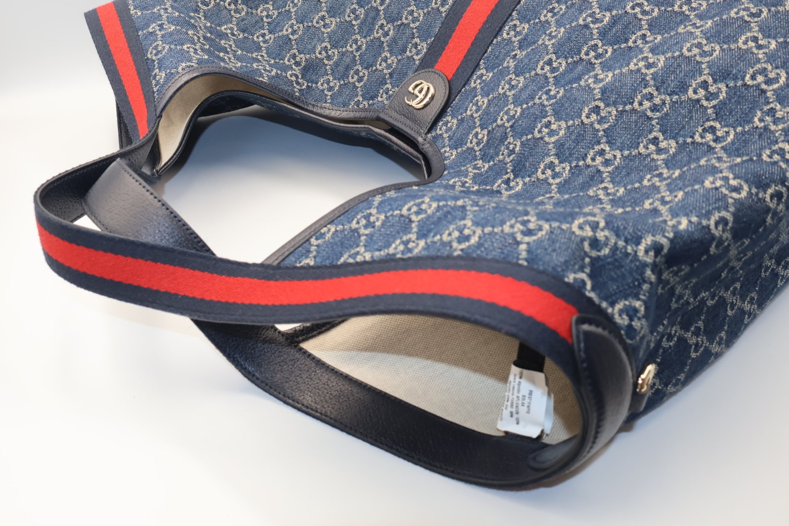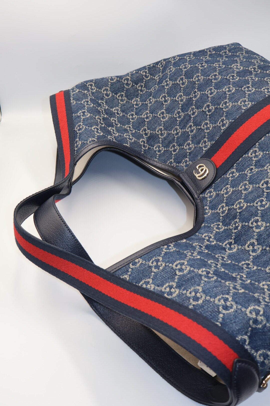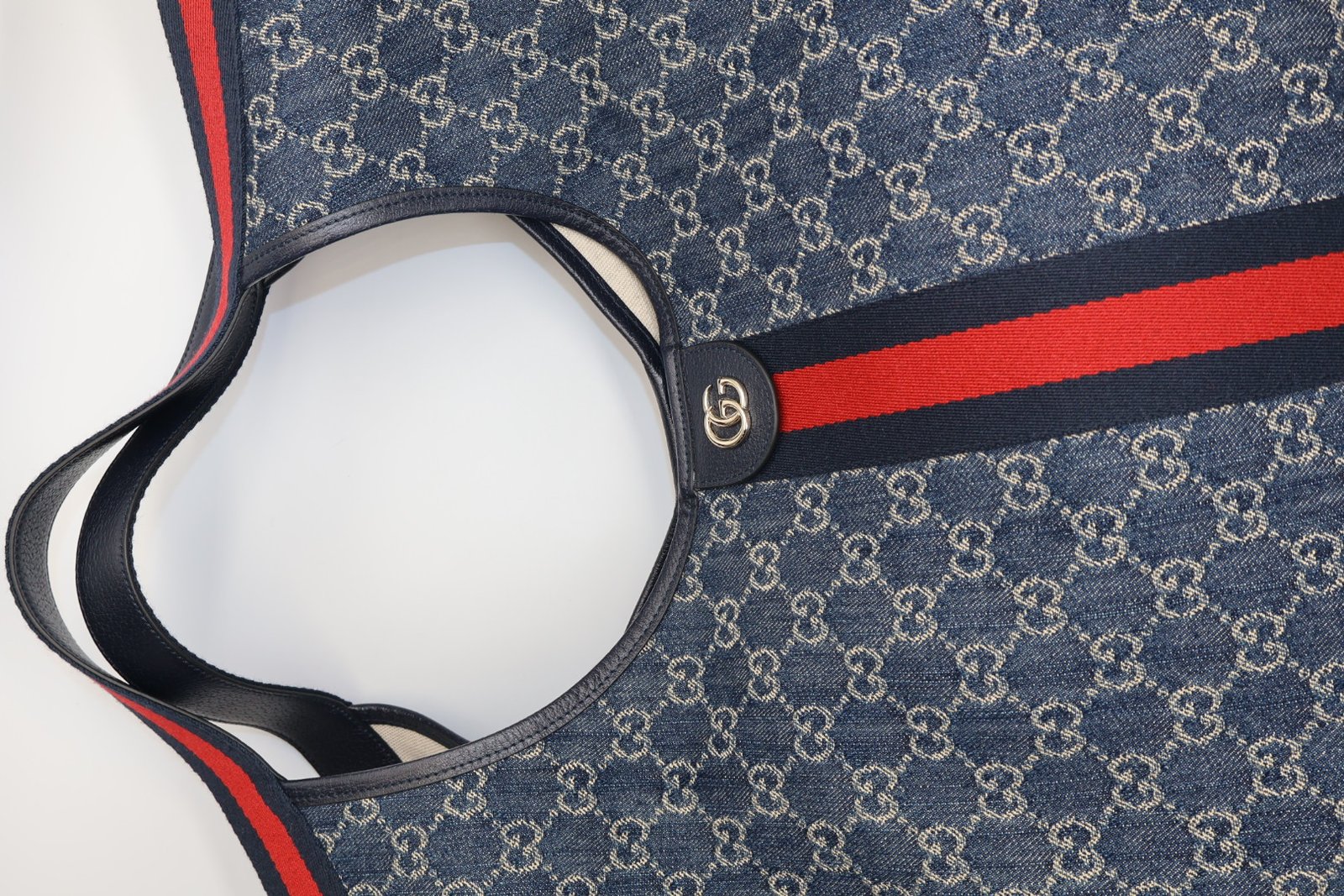 Esta bolsa fue revelado durante el desfile de moda Cruise 2026 en Florencia, Gucci Giglio es un homenaje a las raíces italianas de la casa y el espíritu de continuidad y reinvencion, Confeccionada en mezclilla GG, esta espaciosa bolsa cuenta con el ribete de telaraña y se completa con una bolsa desmontable, viene FULLCET con su caja y cubrepolvo.