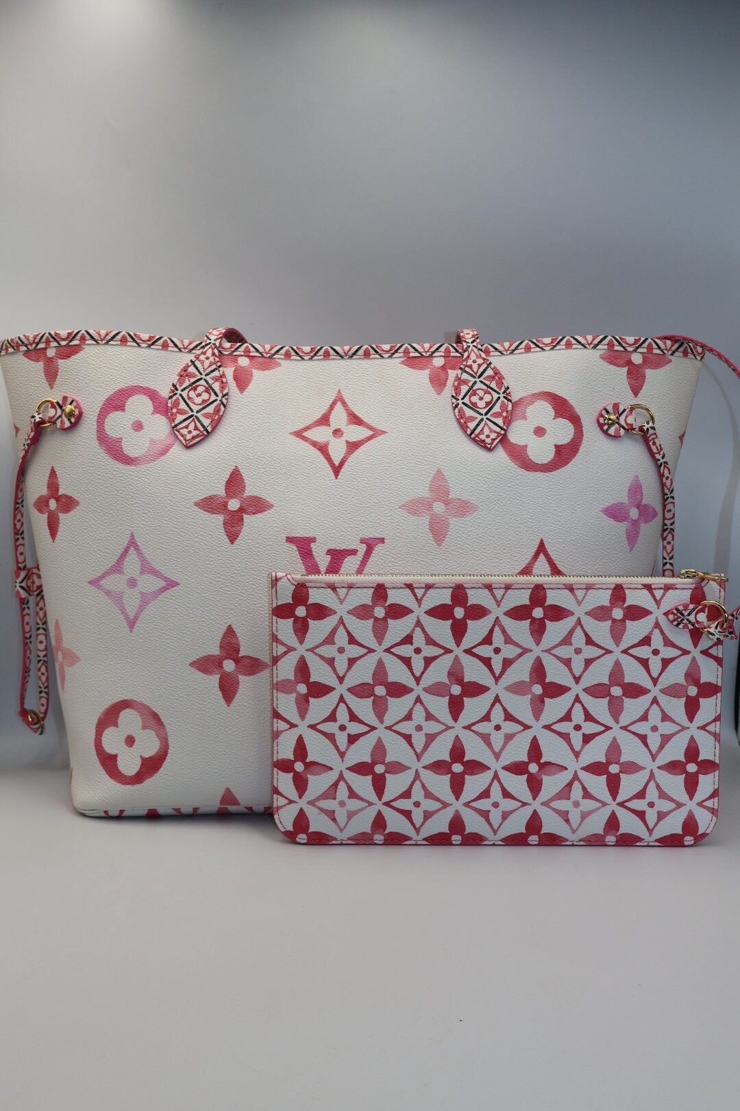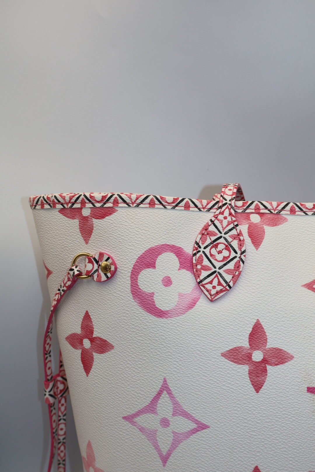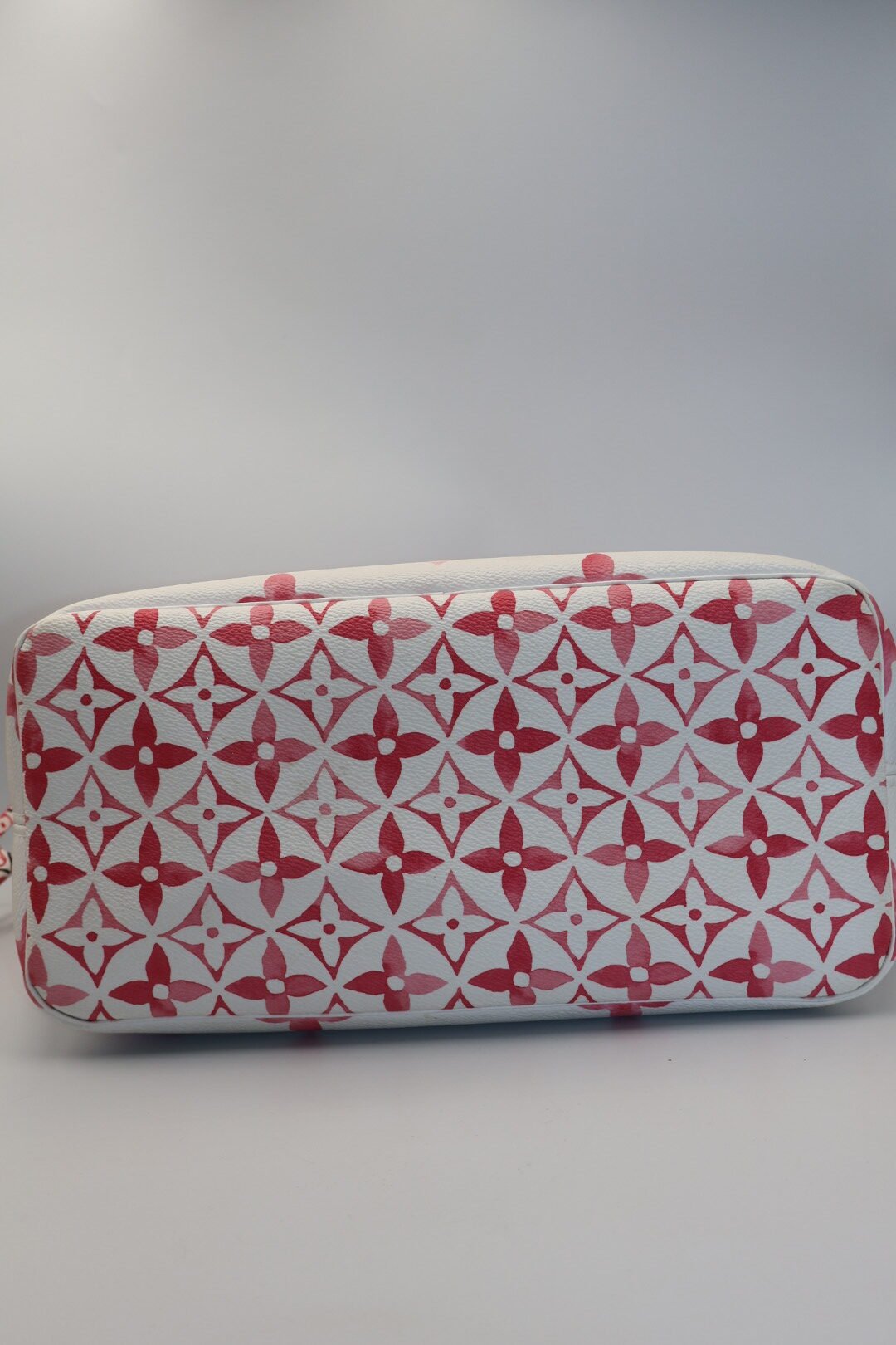 Este bolso presenta una lona de color crema con un estampado de monograma gigante en tonos pastel, el estampado de lasa asas y el interior presenta un denso motivo de flores de monograma inspirado en la cerámica tradicional portuguesa de azulejos, Preloved, solo incluye cubrepolvo .