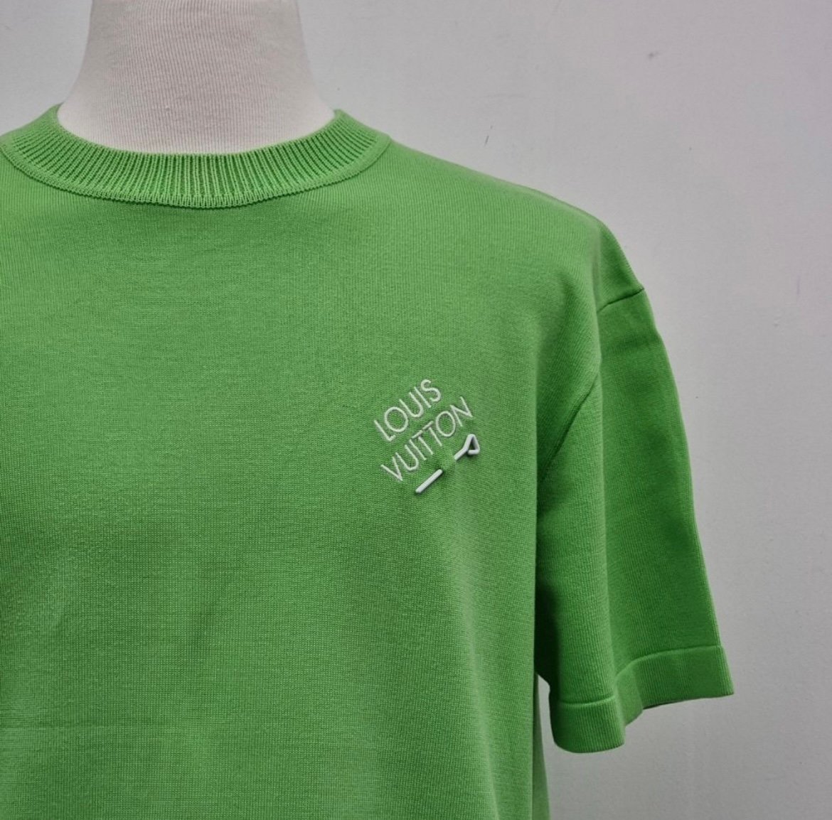 Esta camiseta es en color lima brillante , presenta un corte regular con cuello redondo acanalado , en el lado izquierdo del pecho tiene un pequeño logotipo bordado de LOUIS VUITTON y un símbolo gráfico, que tiene detalles en blanco, 100% algodón, Preloved, en size grande.