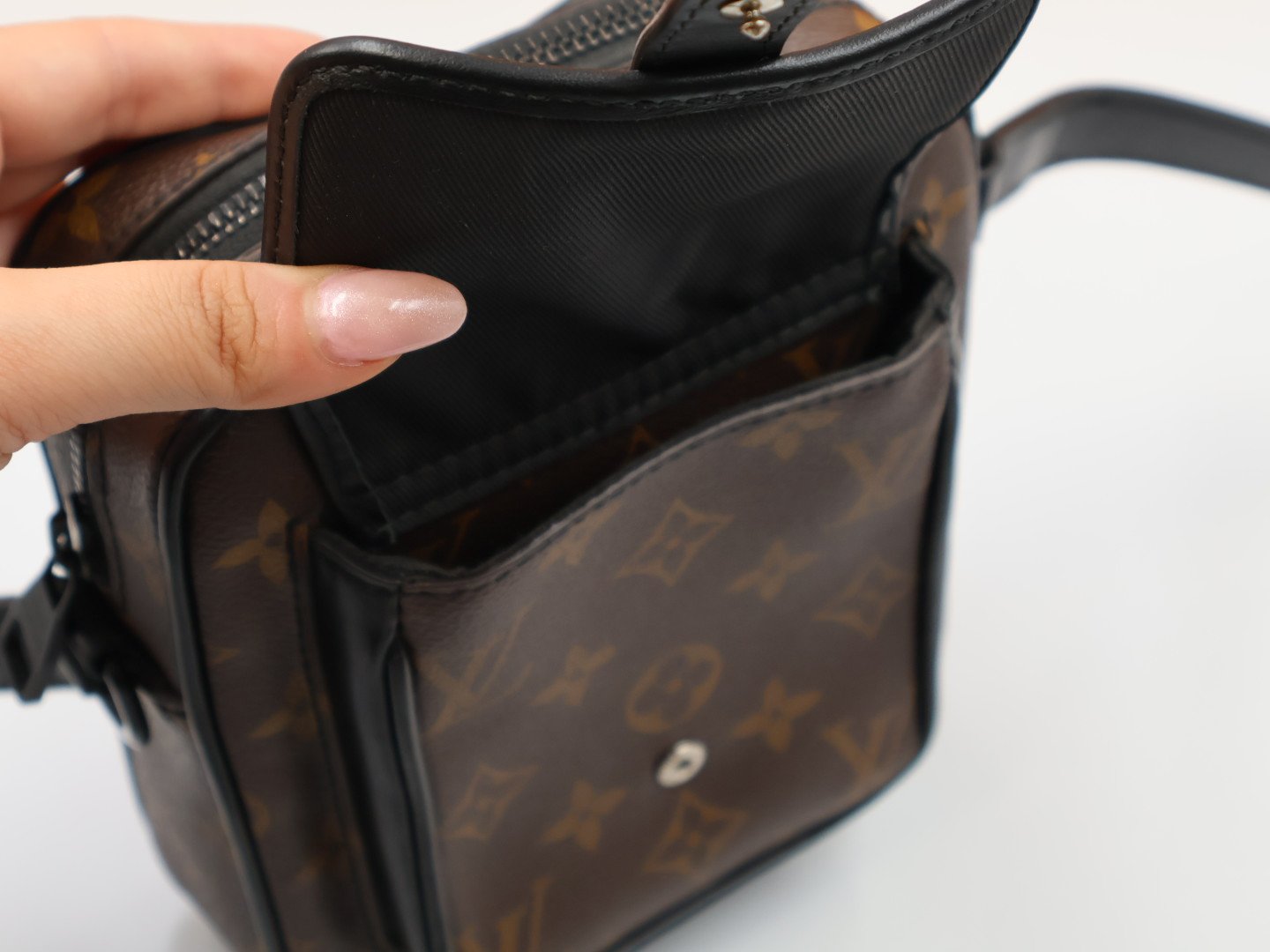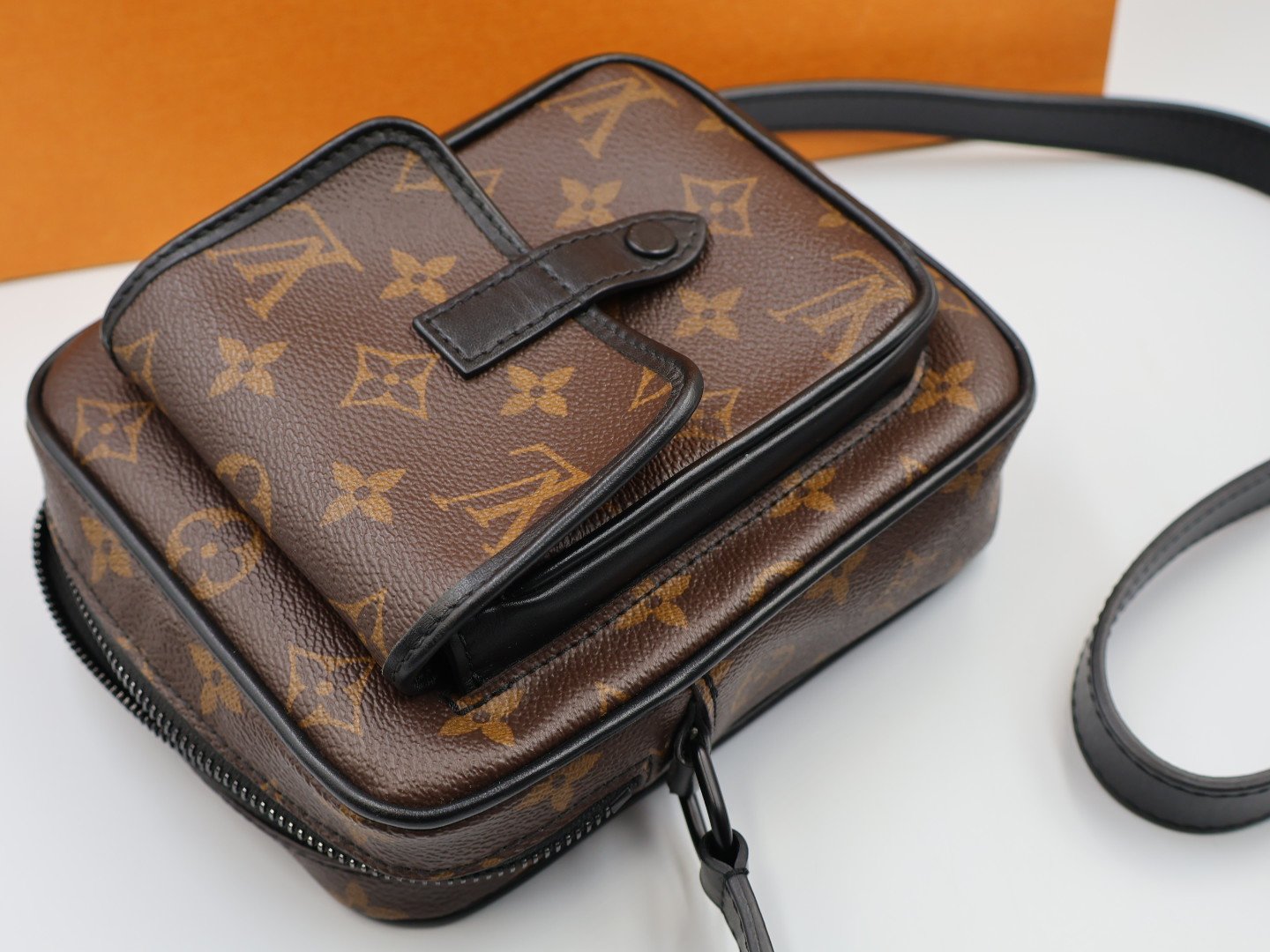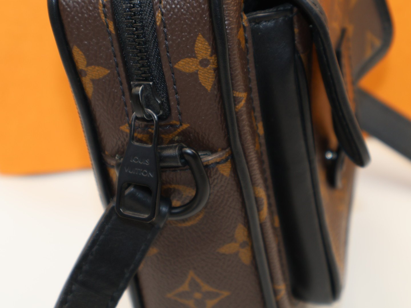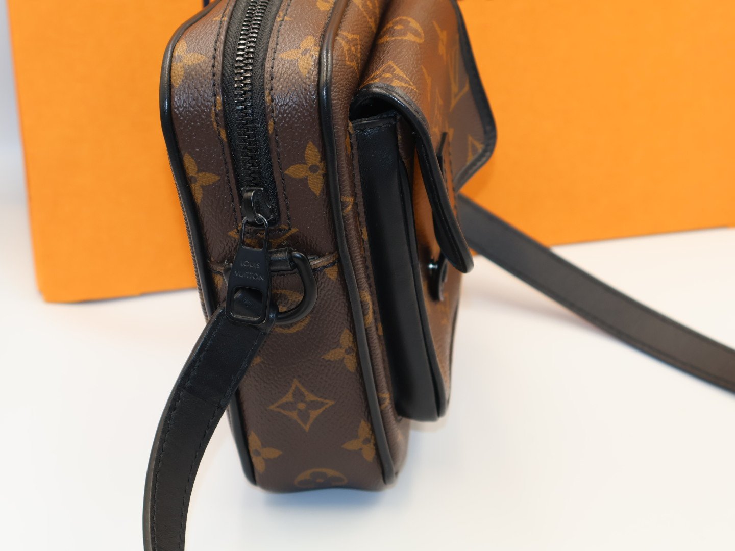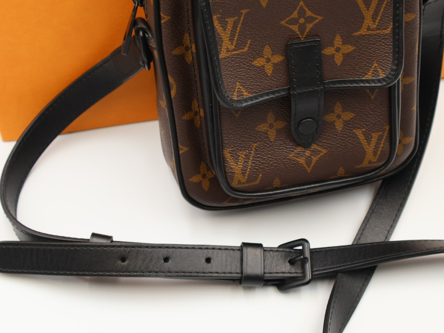 El modelo Christopher con un elegante aspecto deportivo, presenta una forma original para llevar los esenciales diarios del hombre. La característica lona Monogram Macassar de Louis Vuitton se combina con piezas metálicas vanguardistas de color negro mate. Incluye una bandolera ajustable para llevarla cruzada o al hombro, además de un amplio compartimento central y un bolsillo frontal con cierre para guardar hasta tres teléfonos móviles. FULL SET.