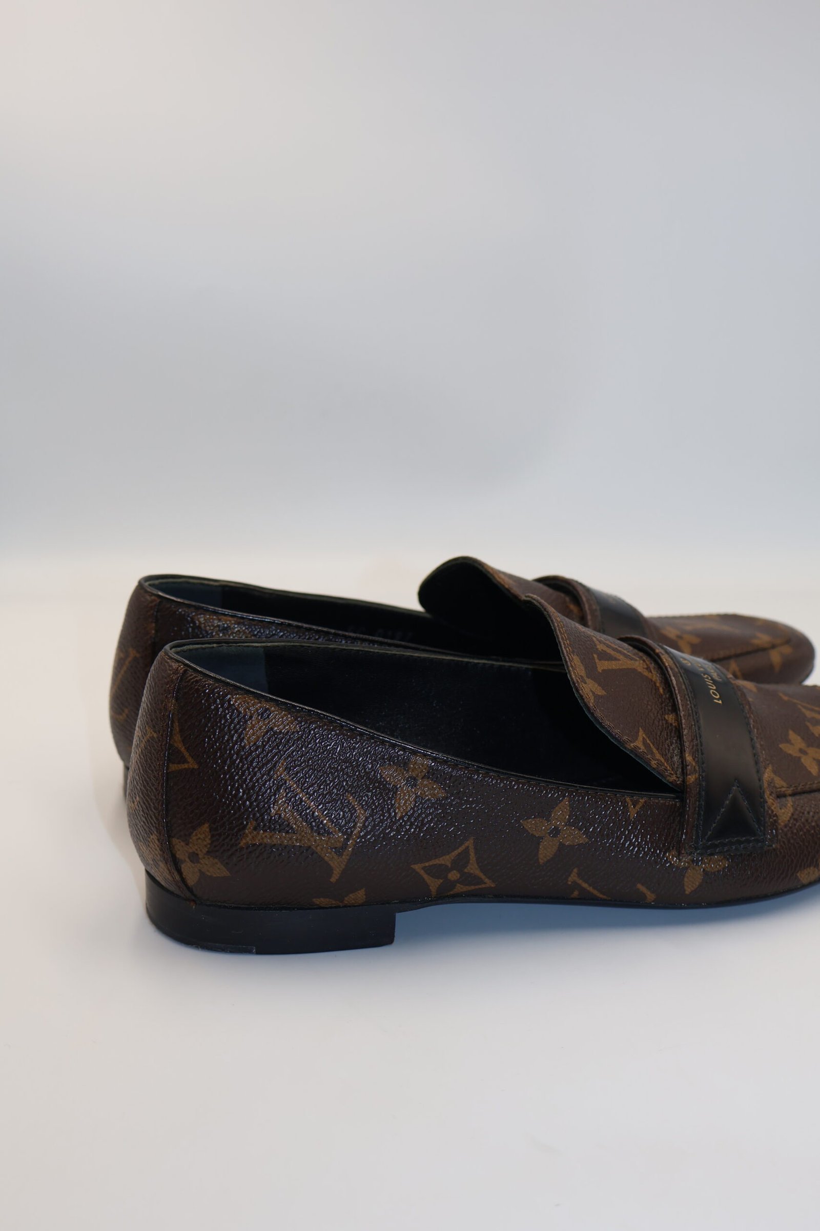 Louis vuitton Mocasines Upper Case , están confeccionadas en lona revestida con el característico monograma de la marca en tonos marrones, lo que les aporta un estilo distintivo y reconocible , incorporan ademas un detalle de firma de Louis Vuitton en la parte superior , reforzando su identidad de lujo, Size 38, Fullset, solo incluye cubrepolvo.