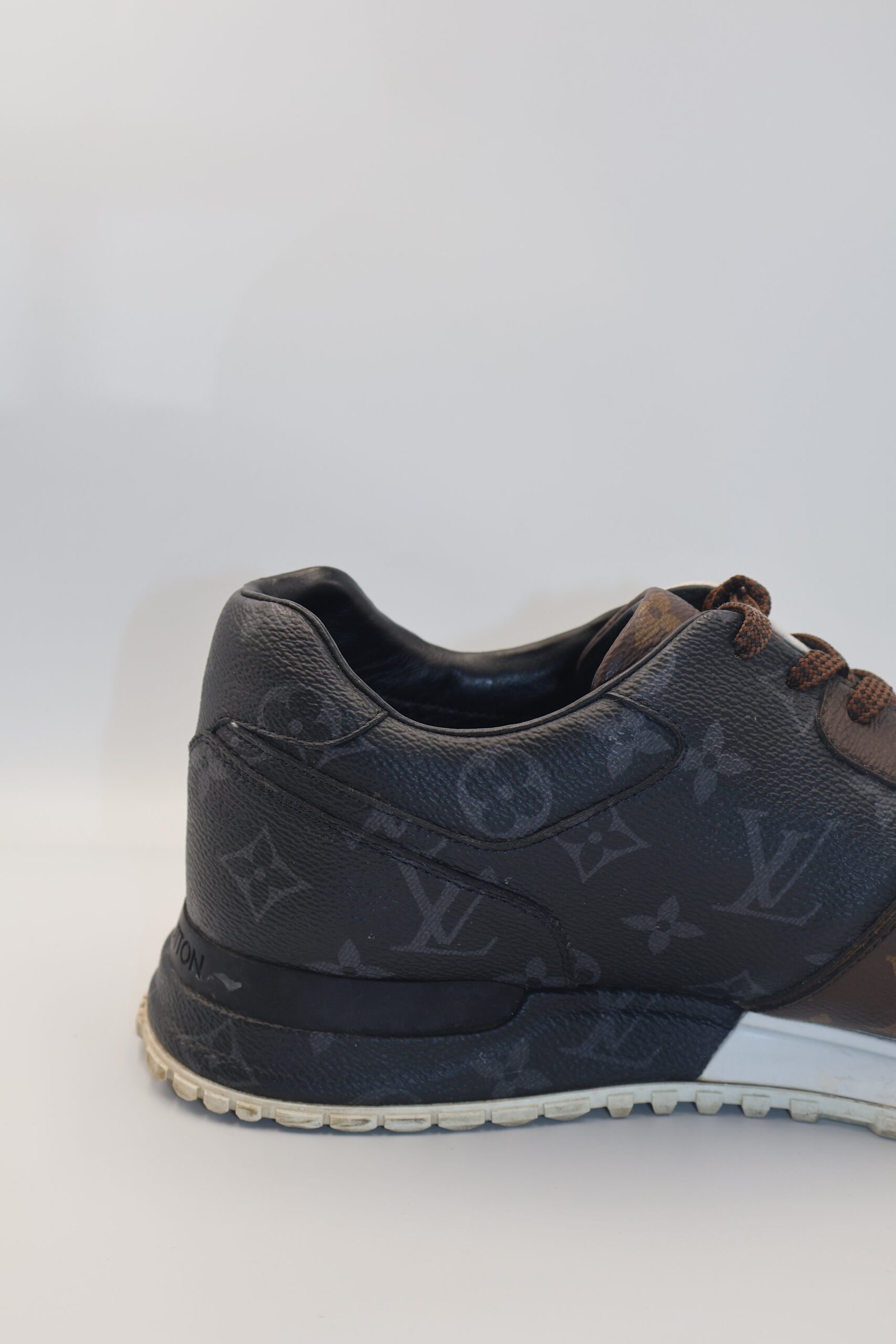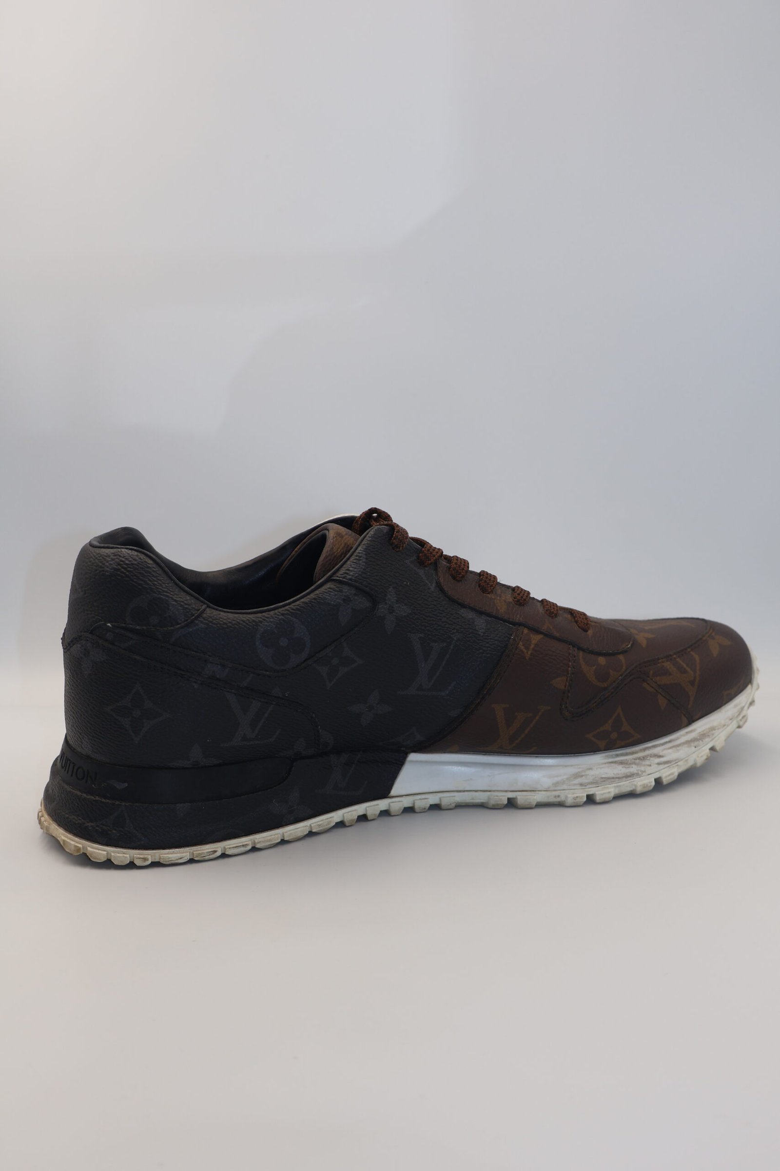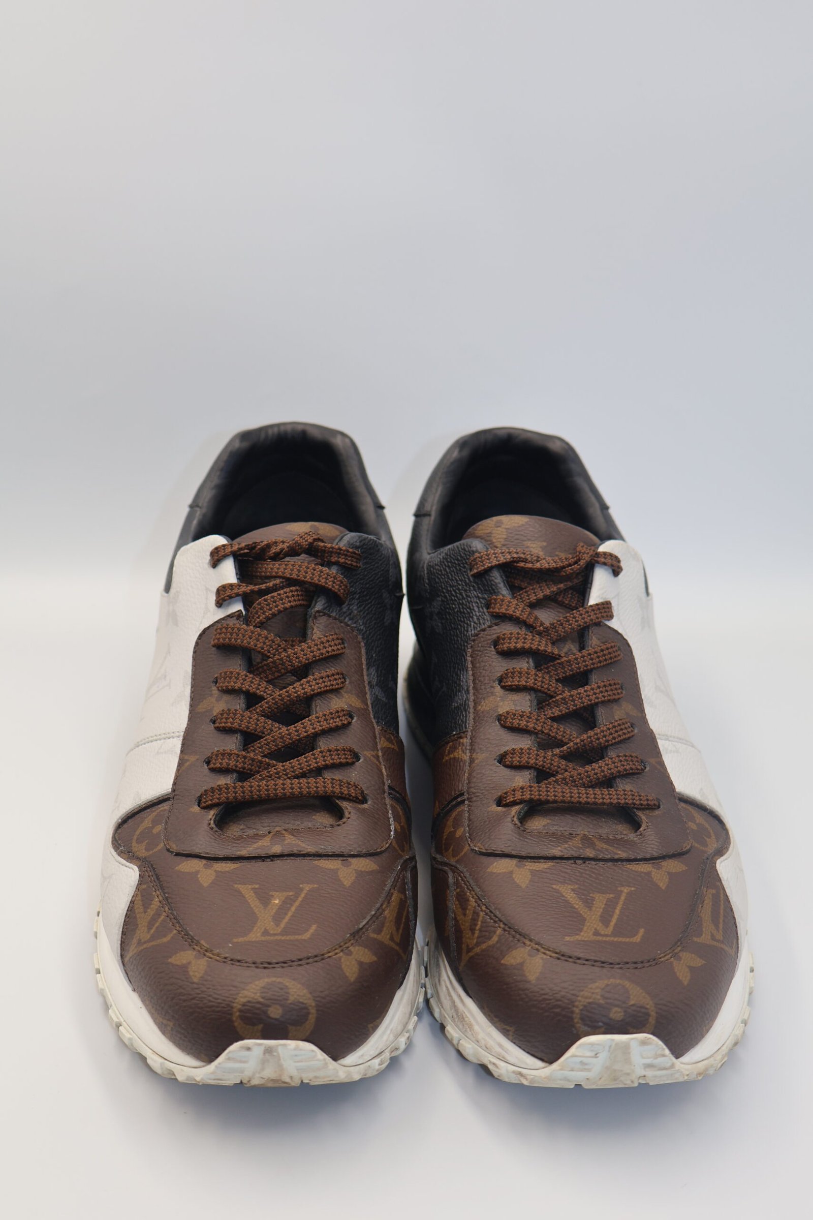 Tenis Louis Vuitton Run Away que viene en tricolor que combina tres variaciones de la distintiva lona monograma, marron, blanco y negro, están confeccionados en lona de monograma, con suela técnica de goma con detalles acabados a mano, cuentan con un acolchonado interno para mayor comodidad, size 8 Preloved.