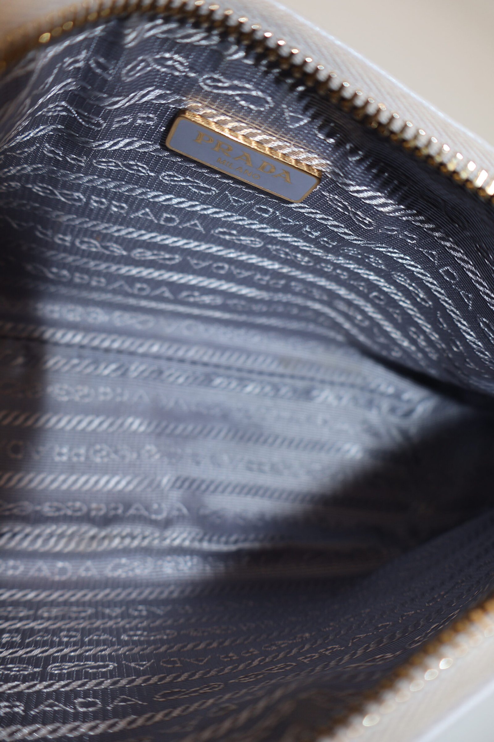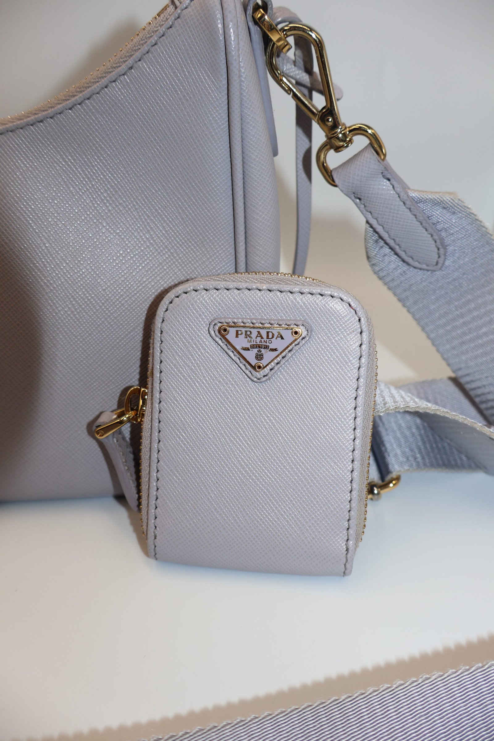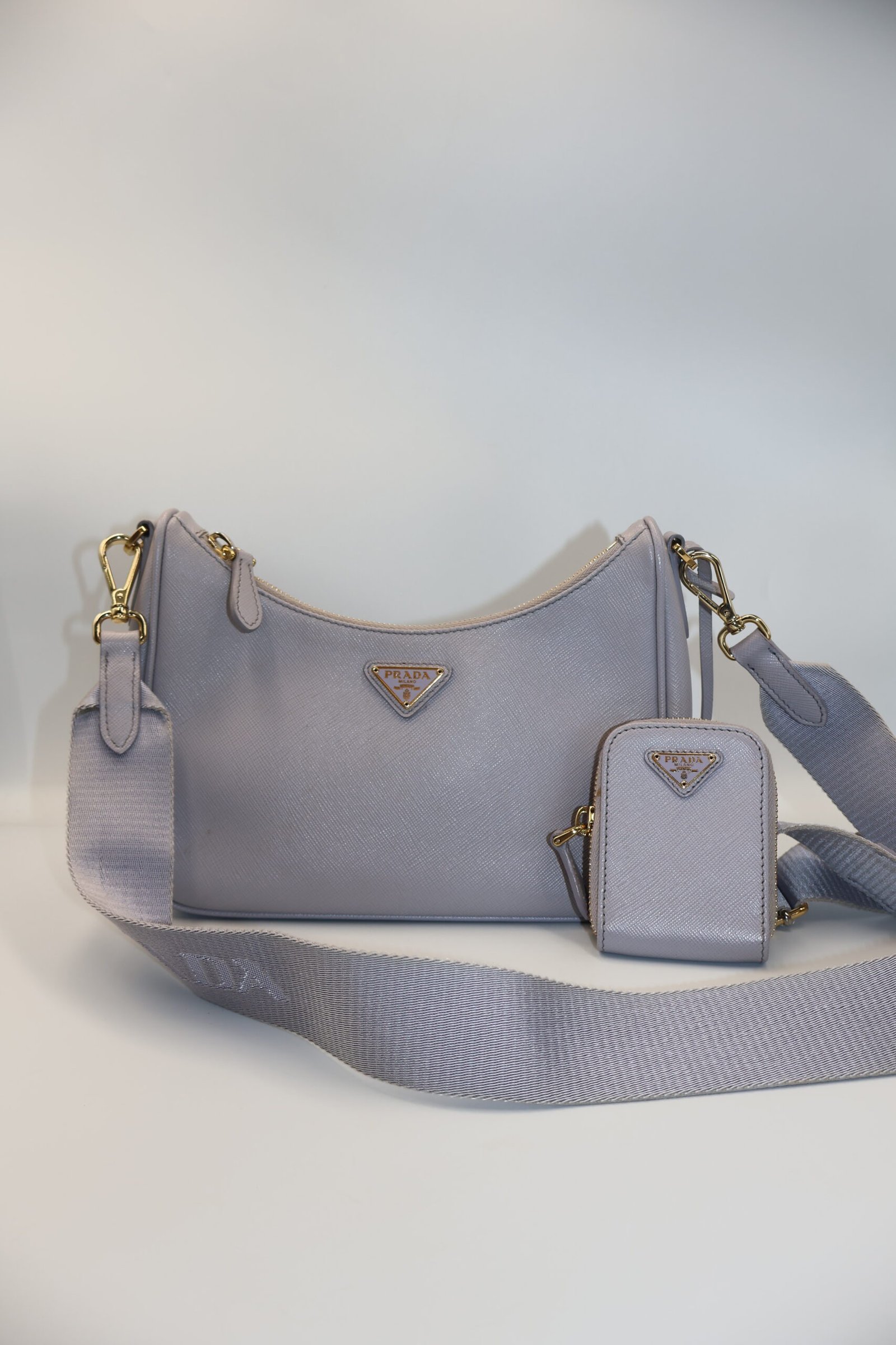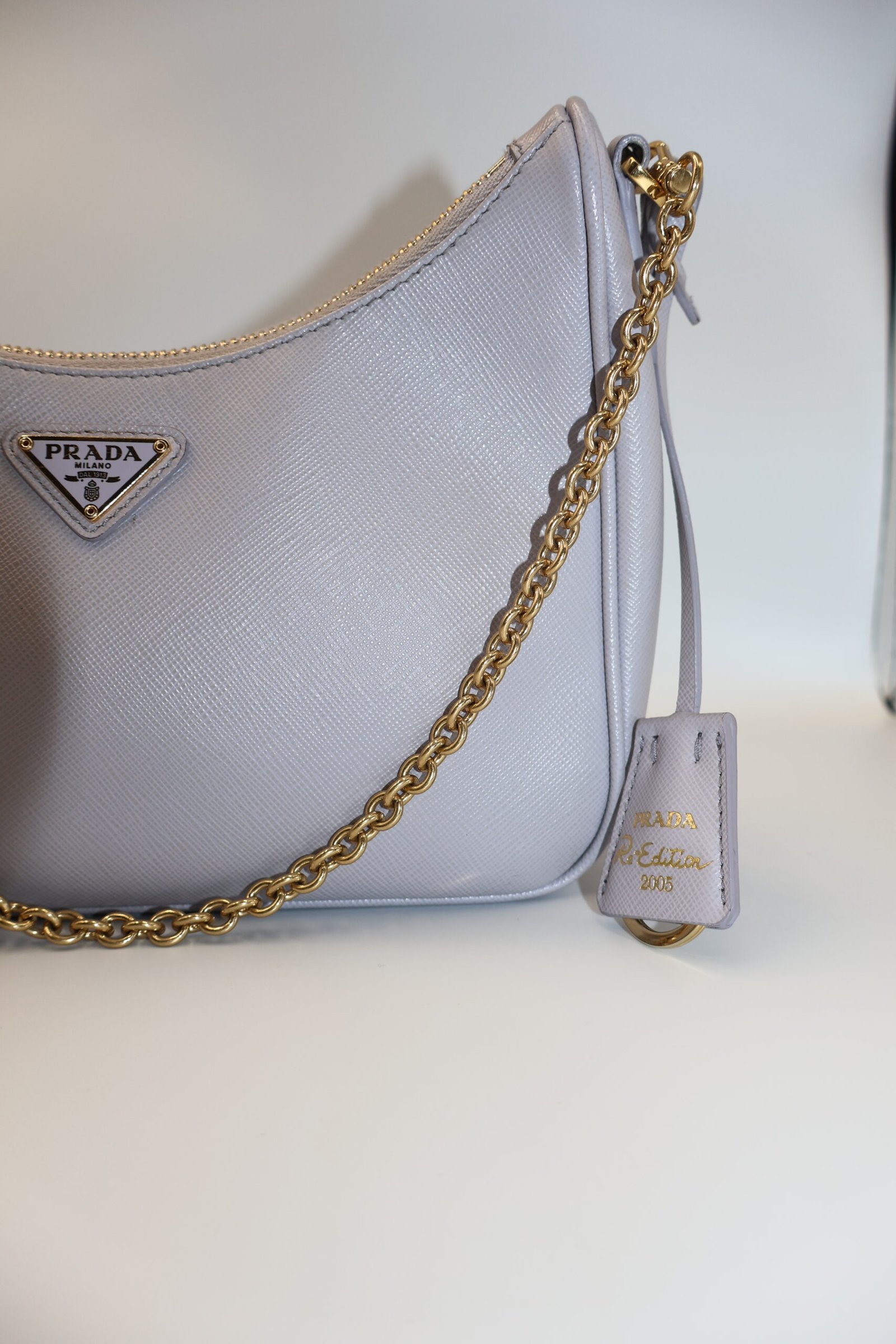 Bolso prada Re-Edition 2005, confeccionada en re-nylon econyl, un nylon regenerado a partir de residuos de plásticos reciclados, incorpora ribete de piel safiano y un pouch extraible sujeto a la bandolera para mayor versatilidad, cuenta con asa de cadena extraible, bandolera ajustable y desmontable con logo impreso, cierre e cremallera , detalles metálicos y logo frontal, Preloved, incluye cubrepolvo.