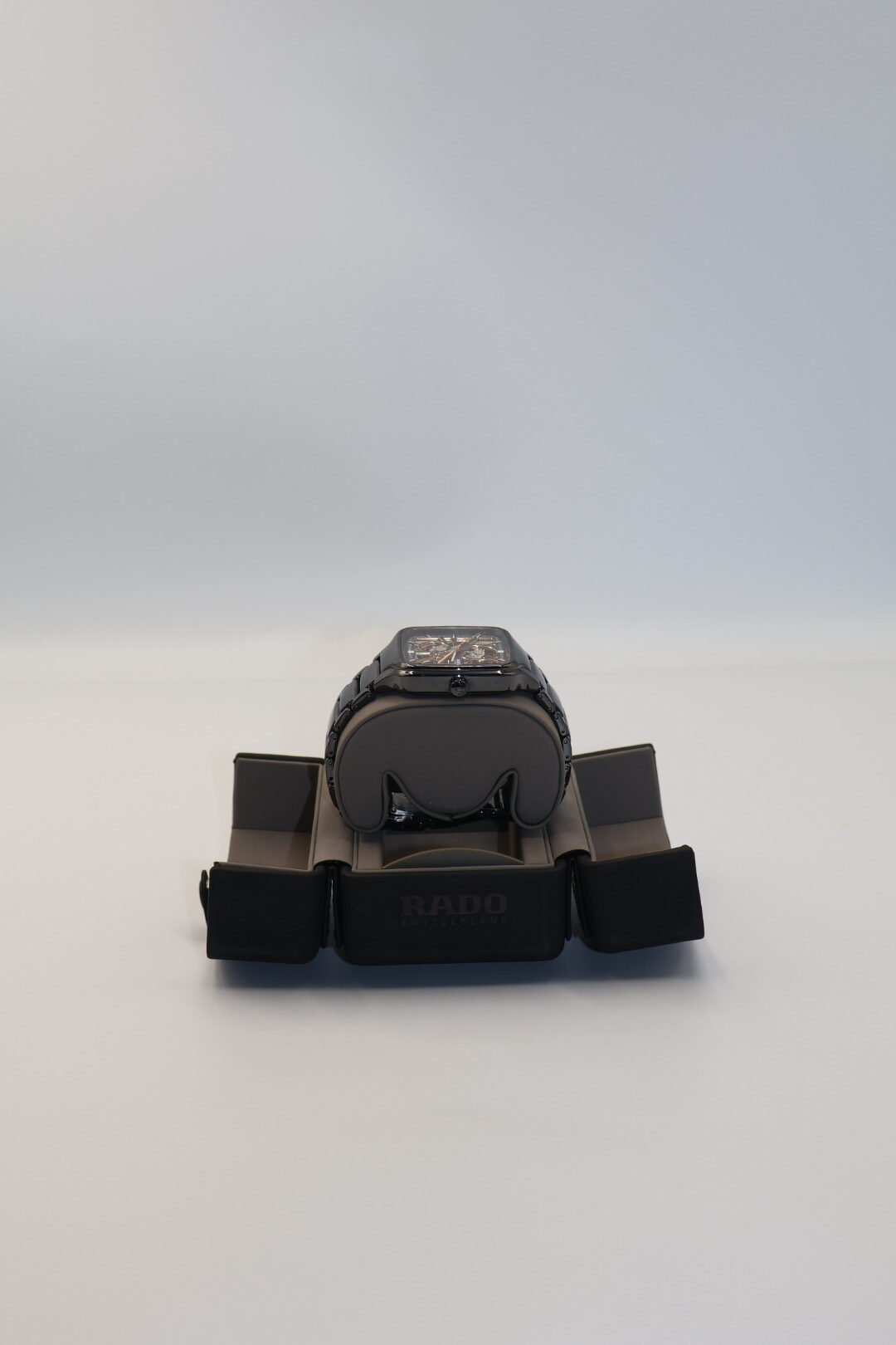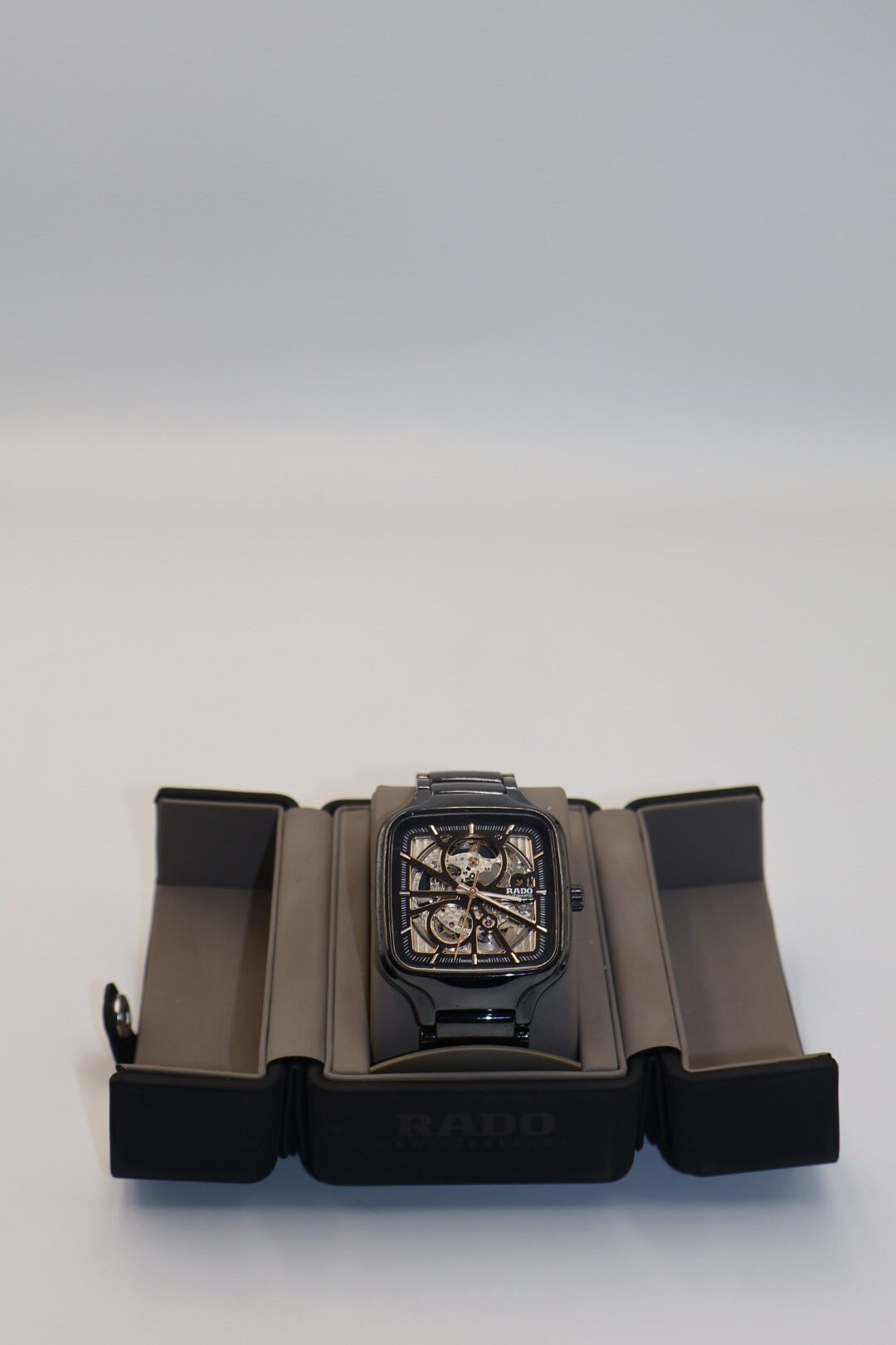 Este reloj combina con la icónica forma cuadrada de la marca con una construcción en cerámica negra de alta tecnología , su diseño monobloque presenta una esfera negra esqueletizada que revela el calibre automático con 80 horas de reservsa de marcha, detalle de 18 quilates , cristal de zafiro antirreflejante y resistencia al agua 50 m completan este elegante y vanguardista reloj, viene fullset, con caja y certificado.