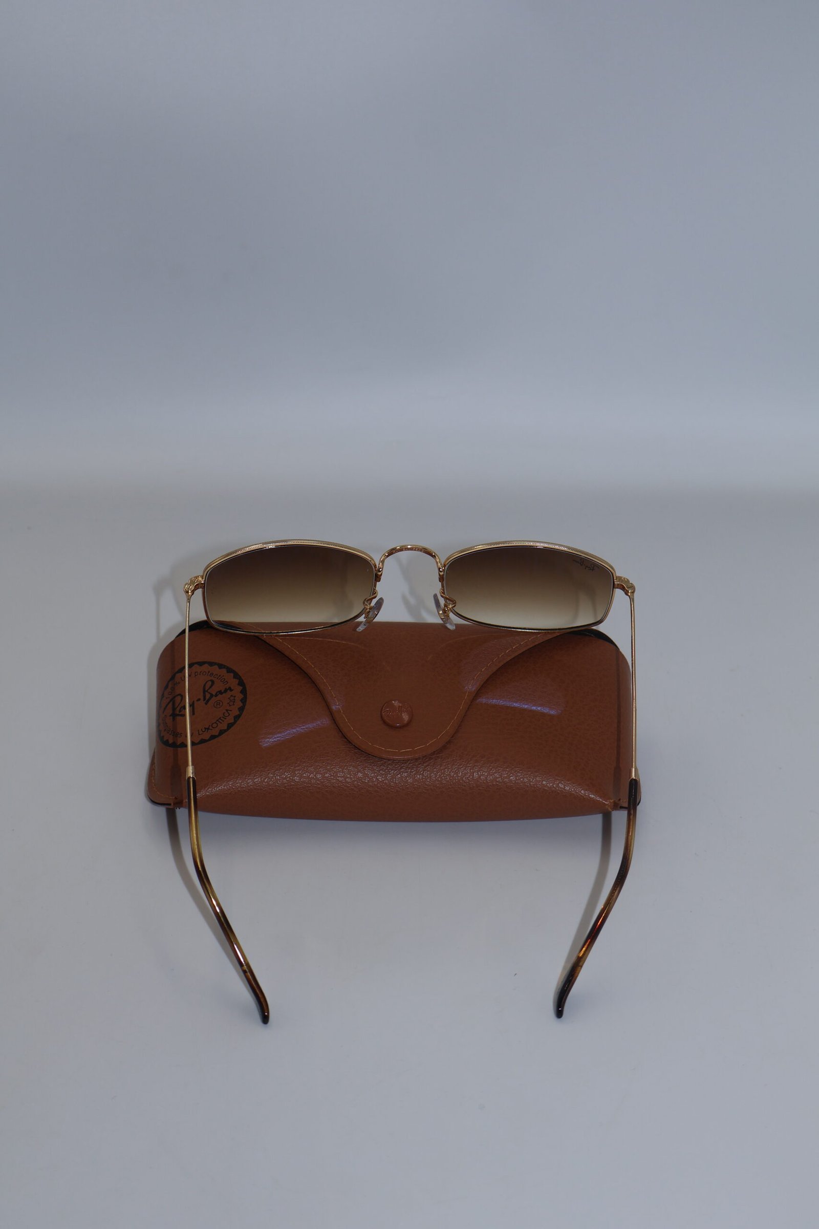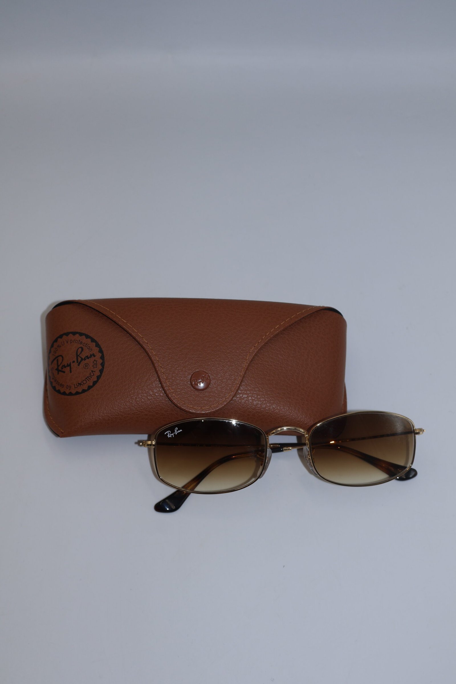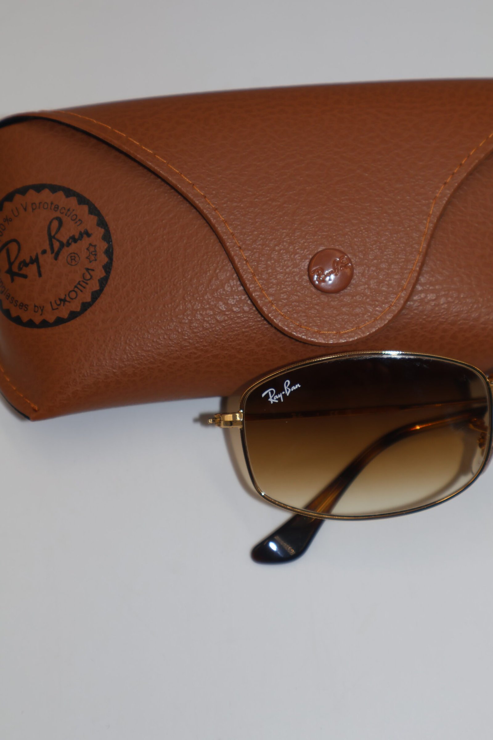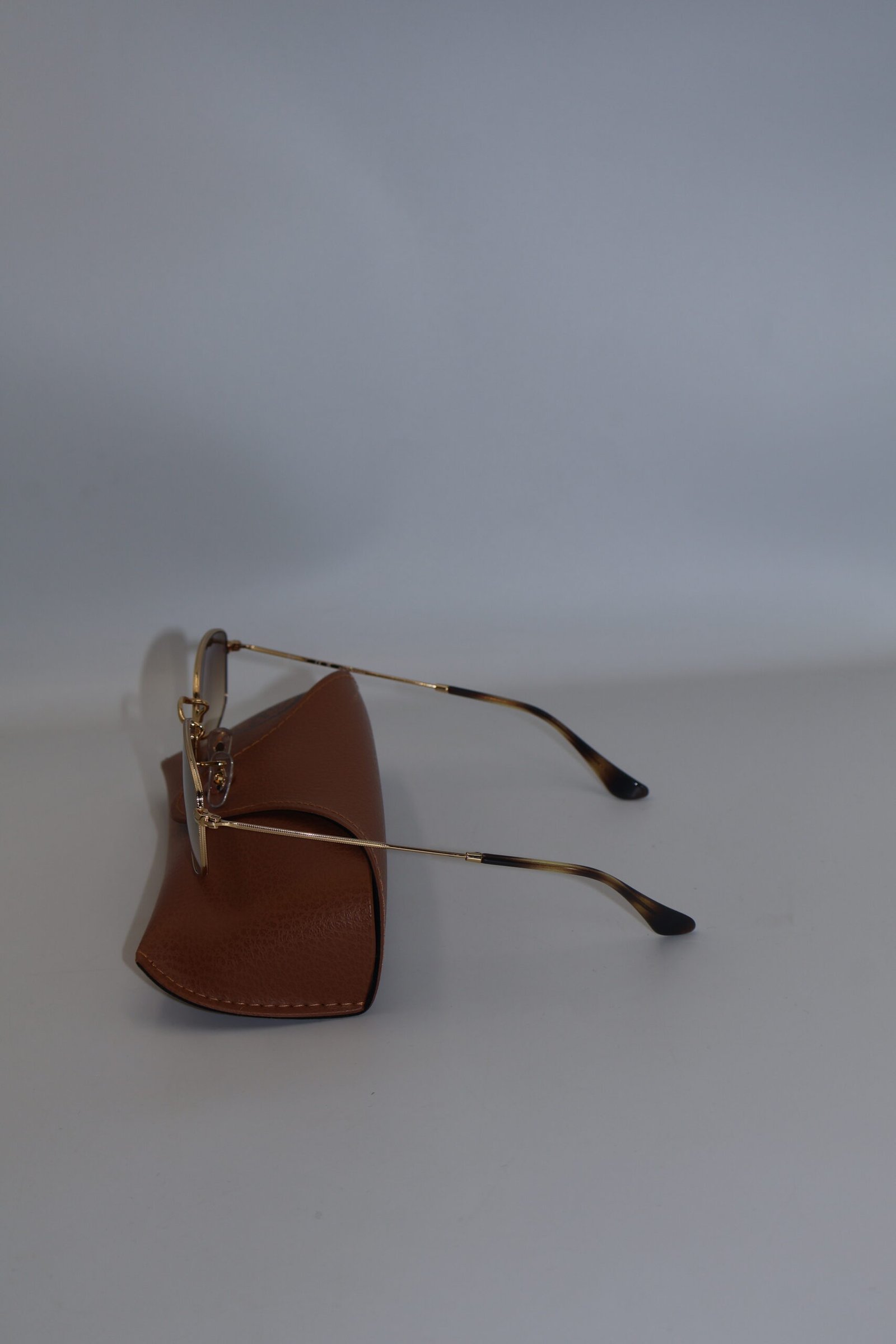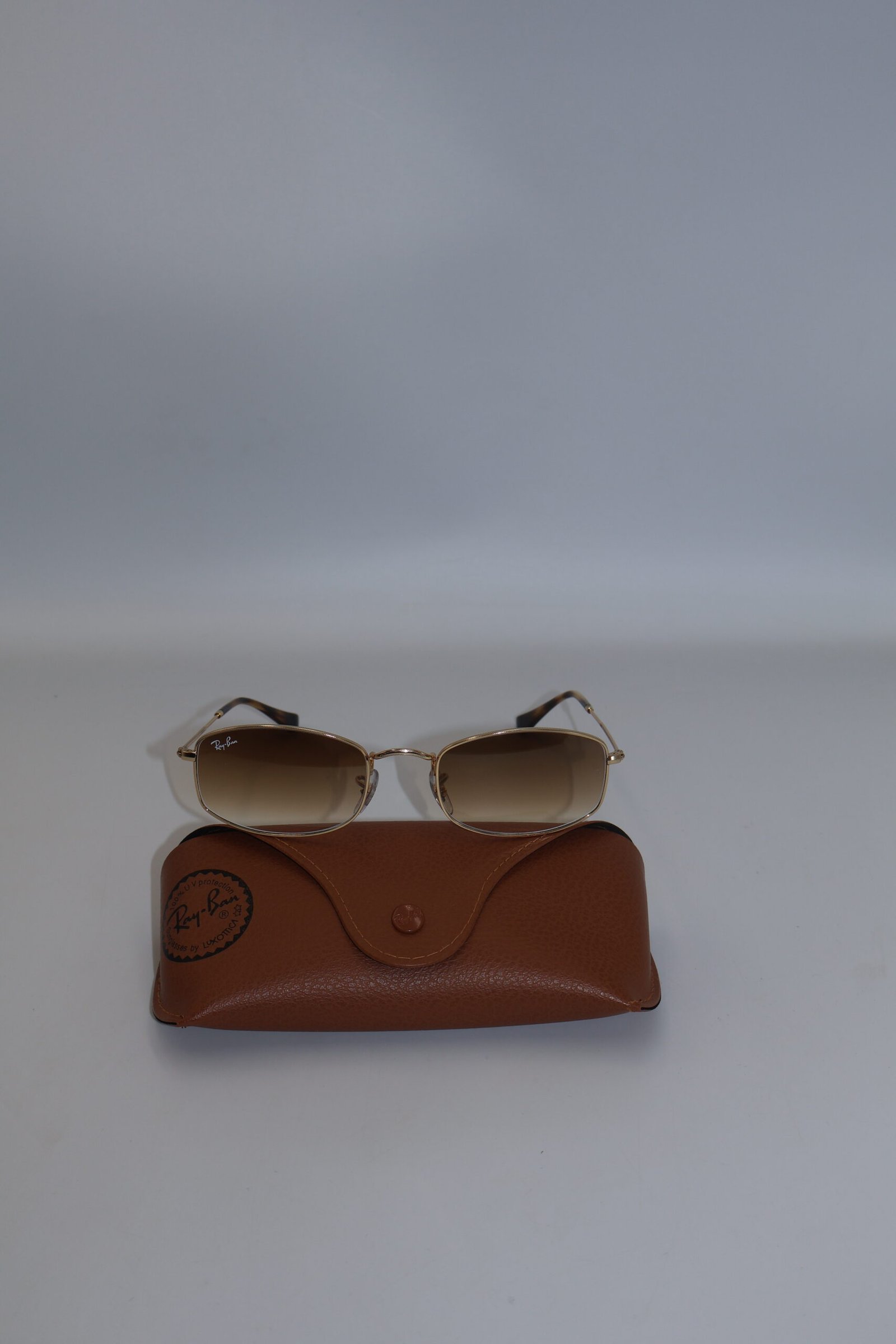 Lentes Ray-Ban RB3832, presentan un armazón de color dorado ( oro arista ), elaborado en metal ligero, lo que les da un aspecto elegante y cómodo, de color marrón con efecto desgradado hacia transparente , ofreciendo protección UV , destaca su diseño destaca por una forma que aporta estilodistintivo y moderno, Fullset, incluyen estuche.