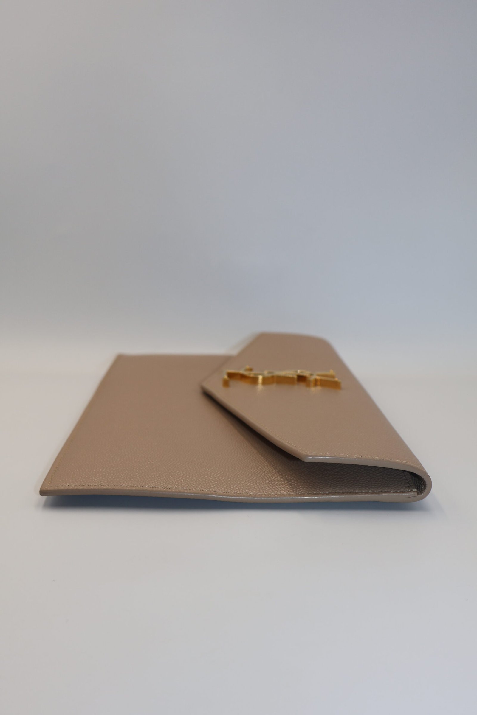 Saint Laurent Ponchette Uptown pequeña con solapa adornada con firma de YSL de metal, Preloved, solo incluye cubrepolvo.